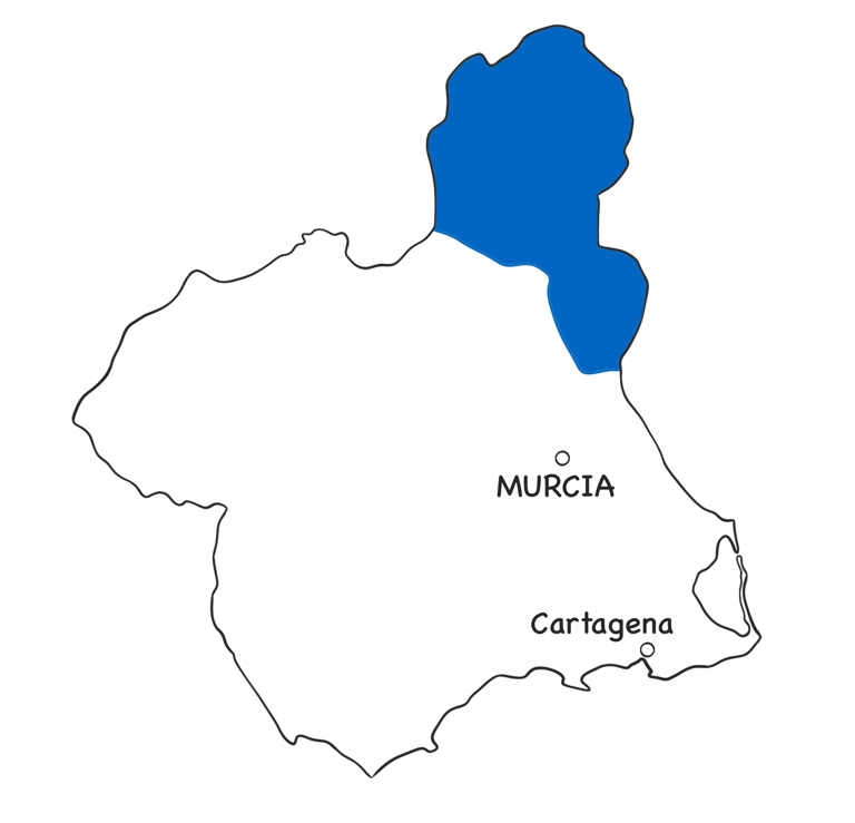 Geographically, the region lies at a higher altitude than the coastal and central areas of Murcia, creating an extreme continental Mediterranean climate: hot, dry summers, cold winters, wide temperature variations and crystal-clear skies. These conditions have shaped both the natural environment and human activity, giving rise to vineyards, almond groves, esparto grass landscapes and settlements deeply adapted to water scarcity.