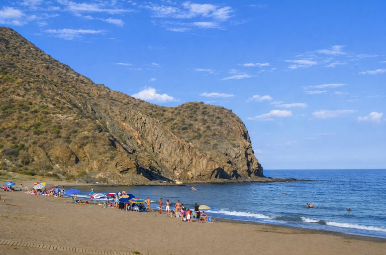 The beaches of Puntas de Calnegre, located along the Lorca coast, are among the most untouched in the region. Small coves, gravel beaches and transparent waters define this area, which remains largely free from urban development. It is ideal for visitors seeking peace, nature and a more authentic Mediterranean coastline.